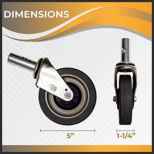For Quiet, Smooth, and Safe Movement- These heavy duty casters are designed to be strong, durable, and quiet wheels for cart, table, workbench, chair, or dolly. The rubber casters measure 5 inches with a 1 ¼ inch gray round tread.