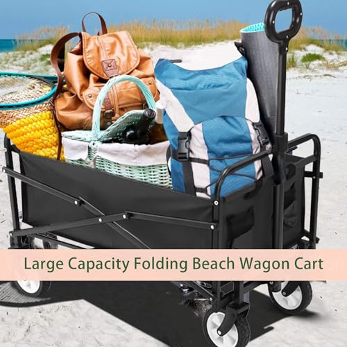 ✅ Multi-purpose outdoor folding wagon —– Our wagon uses an advanced updated technology that is controlled by the manipulation of wheels. With new patterns and bearings for the big PU wheels, we enable a better maneuverability with less noise! Thanks to its large wheels and sturdy frame, your trailer can carry up to 176lb(80KG) and is therefore suitable for garden, wild camping, grass, beach, shopping and so on.