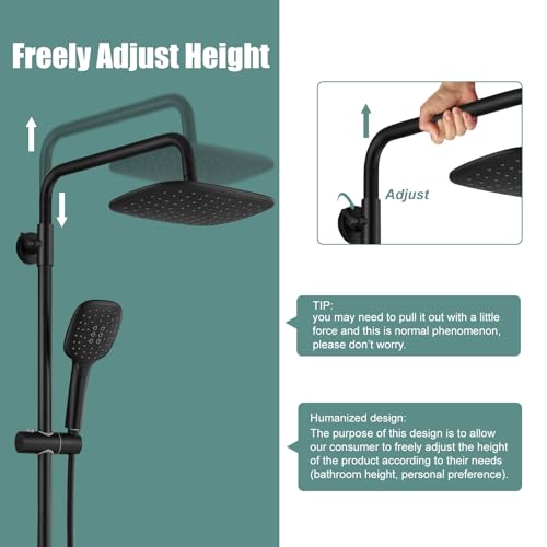 【Shower Height】: Exposed shower faucet height can be adjusted between 39.4 inch – 55 inch (100 cm – 140 cm) according to your comfortable level.