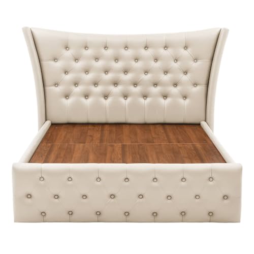 Product Dimensions: Length (206 Cm), Width (158 Cm), Height (111.76 Cm), Mattress Size: 60 x 78 inches (Not Included) | Finish- Beige