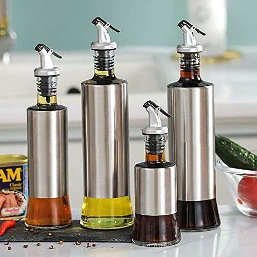 Leak-proof: Made of durable food grade glass and stainless steel pour spout,Pouring spout easily flips open and shut keeping dust,No drips, spills or accidents with these bottles.