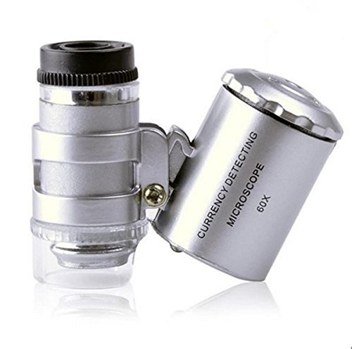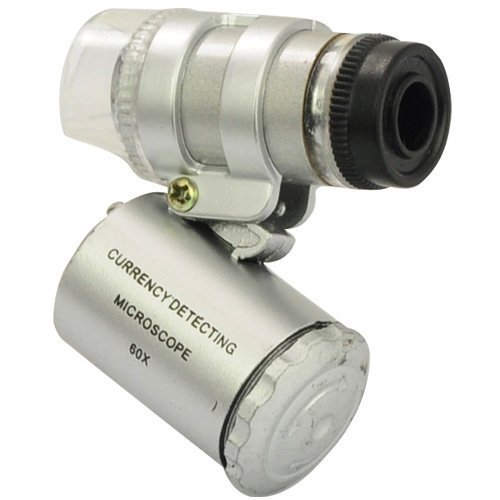 This is one of the smallest 60x handheld mini microscope with UV & LED lights. 60X Magnification gives very clearer and sharp look of the tiny objects.