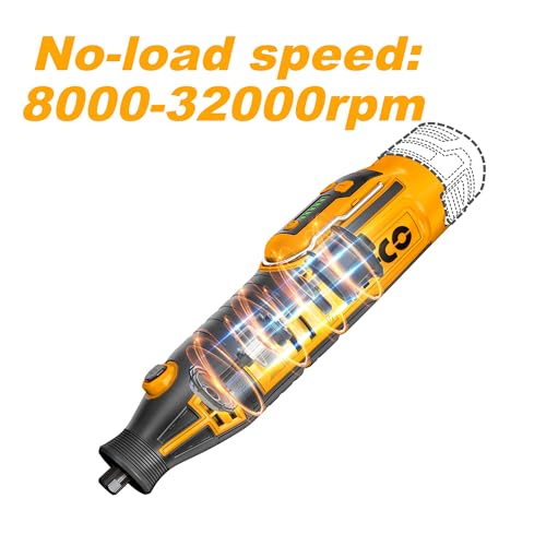 [Variable Speed Control] INGCO rotary tool is a multifunctional tool which can adjust the no-load speed from 8000rpm to 32000 rpm. The 5-speed control allows to find right speed for differernt applications and materials.