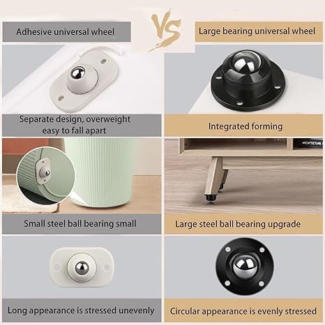 360° SWIVEL WHEELS: The 360° rotatable design of the 4pcs caster wheel allows for easy maneuverability and smooth movement. The smooth ball surface further enhances their performance, allowing for effortless gliding and reducing vibration. Whether you are moving a table, furniture, or small appliances, these caster wheels ensure hassle-free navigation in any direction.
