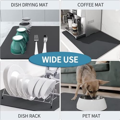Multiple Usage – Suitable for kitchen, sink, dining table, pet bowl mat etc. You can let it catches drips under a dish drying rack to keep the counter dry and clean, or you can place bottles, pots, pans, plates, bowls, cups, knives, silverware, serve ware, glassware, stemware, tableware and so on directly on the mat
