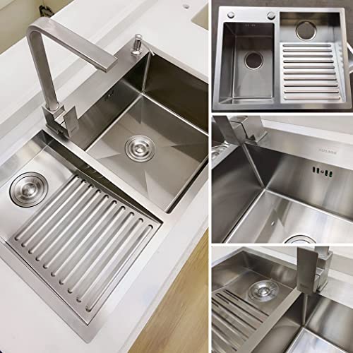 ✅Heavy-Duty Stainless Steel: Made of high-quality 16# SUS304 grade stainless steel, hand-welded and finely polished, not machine-stamped. Durable, high-strength, and wear-resistant. The edges are finely sanded, rounded, and natural. Commercial grade brushed finish for smooth surface, strong metallic texture, and no fading. Nanocoating makes it easy to clean.
