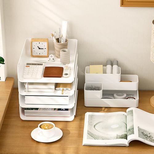 🏡 Stacking Designstackable Paper Organizer Trays, Grooved Buckle Design On Both Sides Of The Bottom Makes It Easy To Stack, Stable And Not Easy To Fall Over, Space Saving And Keeping Your Desktop Organized And Tidy.