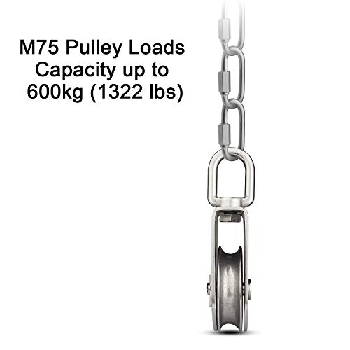 Heavy Duty Load Capacity – Rugged construction and shock-resistant design make pulley block extremely rugged. M75 pulley loads capacity up to 600kg (1322 lbs), work well with 3/8 to 1/2 inch cables or ropes