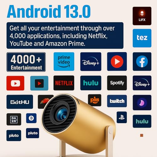 Maizic Smarthome Golden 2X Smart Projector, 13.0 Android Pro… is Marketed by https://www.excelinds.com/online-shop/