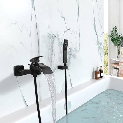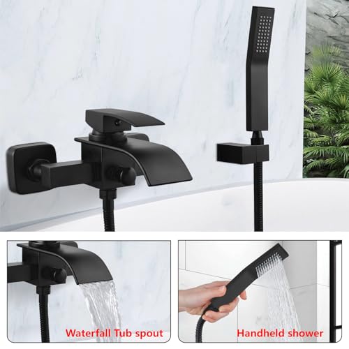 Matte Black Wall Mount Bathtub Faucet with Handheld Spray Wa… is Marketed by https://www.excelinds.com/online-shop/
