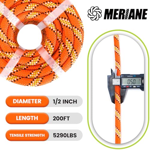 High Strength: MERIANE polyester rope has unparalleled strength and durability. The rope has a 1/2 inch diameter, a breaking strength of 5290 lbs, and is recommended for working within 1200 lbs. The rope is available in 4 lengths – 50ft 100ft 150ft 200ft, and 2 colors – Blue Orange, you can choose the length and color that suits you