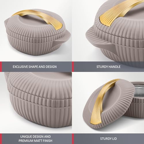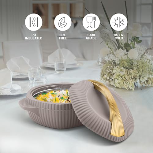 PU Insulated Inner stainless-steel casserole keeps food hot and fresh for hours. Unique design, elegant shape and premium matt finish adds a hint of royalty to your dining and enhances your dining décorum and thus makes it a must-have casserole for your home.