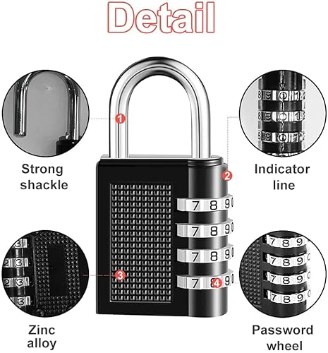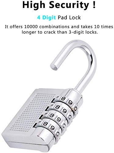 Combination padlock portable and simply design easy to use. Use 4-Digit resettable dial without the trouble of losing your key Also allows you to make private combination more convenient