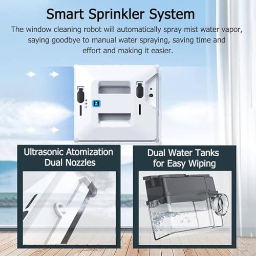 – 【MULTIPLE PROTECTIONS】 Equipped with anti-fall sensors and a safety rope, the Window Cleaning Robot has a built-in UPS battery for 20 minutes of operation and alerts for sudden power cuts.