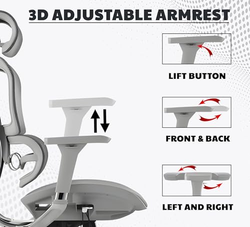 3D Adjustable Armrests:- Fully adjustable armrests to align with desk height and support forearms, reducing strain on shoulders and wrists. Allows height, angle, and width adjustments for better ergonomics.