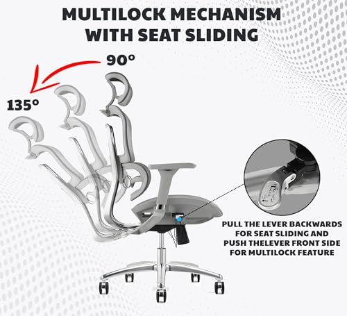 Seat Sliding Mechanism:- Seat depth adjustment (sliding mechanism) allows the user to customize seat length for optimal thigh support. Ideal for users of various heights to ensure proper ergonomic posture.