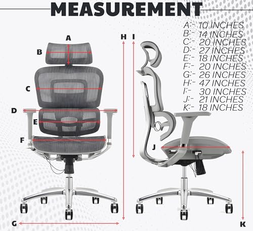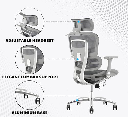 Ergonomic Design:- 2D Adjustable headrest for neck and head support. Height-adjustable backrest to customize lumbar support position and accommodate different body sizes.