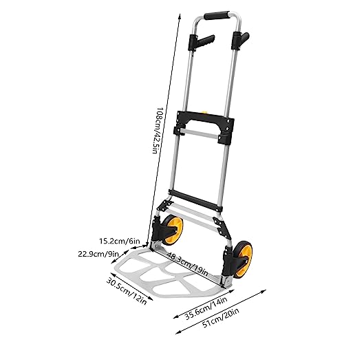 Easy to Store and Carry: Trolly dolly cartis only 2.5 inches thick when folded, it can be easily placed in the car, garage, under the bed, or cabinet, thus saving you a lot of space. The lightweight of 12.13 lbs and compact folding size (19 x 2.5 x 32 inches) can also make you carry it around more easily.