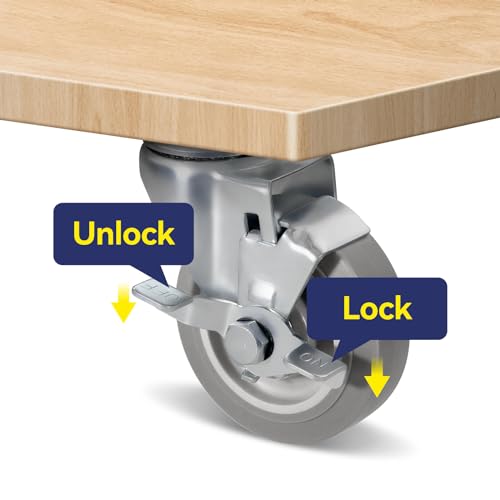 SWIVEL CASTERS WITH BRAKE: The 4 inch rubber Casters with wheels heavy duty rotate 360 degrees and are equipped with brakes that are easily engaged and released by hand or with your foot. The locking casters design makes it safer when used as a rolling bench caster, industrial caster, or heavy-duty caster, especially on uneven surfaces.