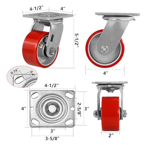 Casters Set of 4: A single wheel can carry 800lbs, 4 swivel casters can carry 3200lbs. heavy duty casters are easy to push and save effort, which are designed for handling.