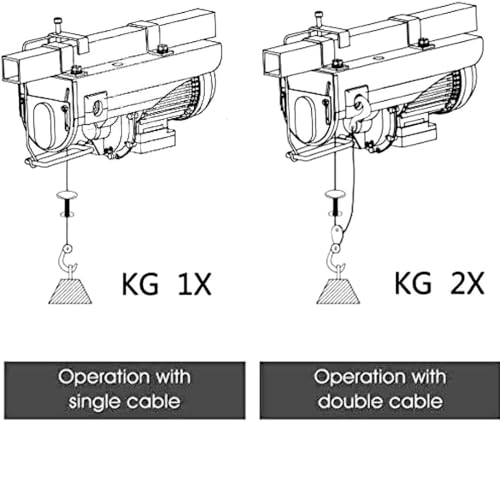 ## 【Sheaved Pulley Lift Hook For Dual Line Operation】– 2 heavy duty weighted lift hook. Lift speed of 33ft per minute of single hook, 16.4ft per minute of double. Max lift height of 20Mtr (66ft) of single, 10Mtr (33ft) of double hooks.