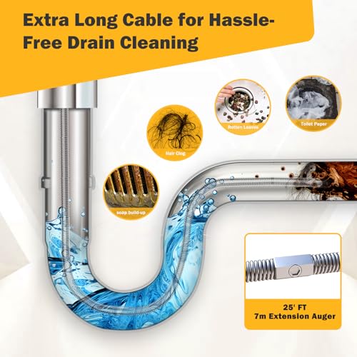 Wide and Easy to use: Dredging Capability of 3/4″ to 2″ inches (19-50mm) pipes to match the need for any plumbing project you take on; The steel flexible shaft accommodates various drain systems like ‘S’ and ‘L’ pipe layouts