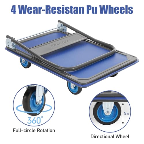 Space-saving design: This flatbed cart, made with all-steel construction and a textured vinyl deck, folds flat for easy storage, ideal for home, office, and garden use.