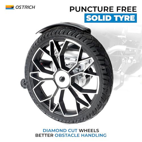 Powerful Performance Meets Durable Design: Conquer your day with the robust MS (Mild Steel) frame, built for lasting durability and supporting a substantial 120kg load capacity. The powerful 250W motor delivers a smooth ride up to 6 kmph, tackling inclines with a 9-degree gradient ability, while solid mag wheels and swivel front castors ensure effortless maneuverability.