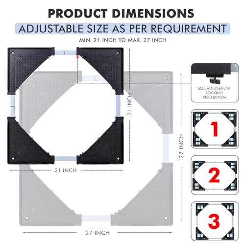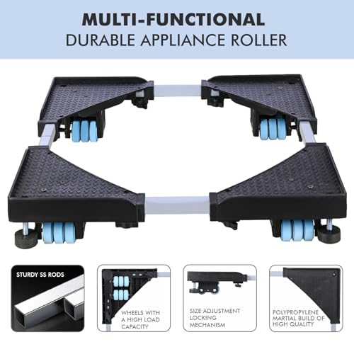 EQUIPPED WITH 4 ADJUSTABLE STOPPERS: This stand provides sturdy support and balance, keeping your fridge secure. Adjustable stoppers cater to various dimensions, customising the stand for your needs. Easy cleaning and kitchen rearrangement made it effortless.