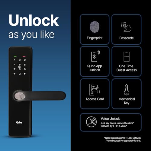 Multiple Ways to Unlock: Unlock your door effortlessly using a fingerprint, passcode, Qubo App, OTP, Access card, or mechanical key—giving you flexibility and convenience.