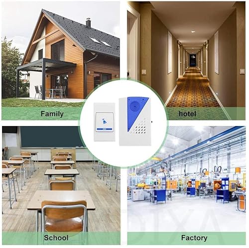 Extended Wireless Range : The doorbell kit provides an impressive wireless transmission range of over 100 feet (approximately 30 meters). This long-range capability ensures reliable signal transmission even in large spaces or buildings, allowing you to place the doorbell receiver at a convenient location.