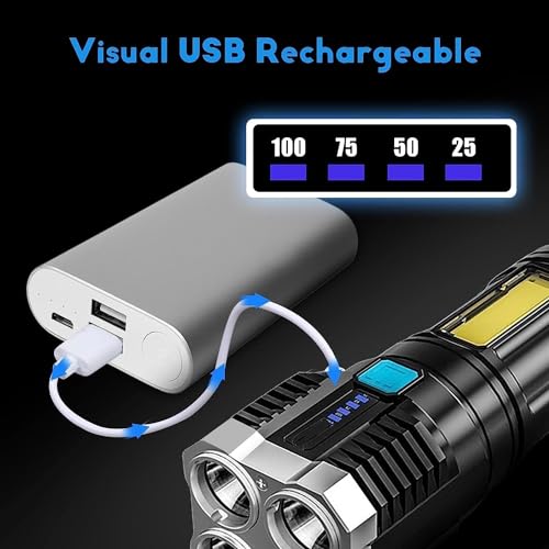 Super Bright torch light high power : This romino rechargeable touch light has built-in high-quality LED and COB lamp beads, super bright and strong light transmission, range up to 400m, powerful super bright lamp beads, durable.