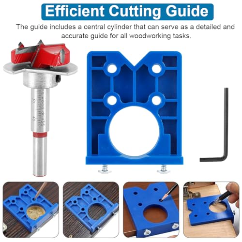 EFFICIENT CUTTING GUIDE: Achieve immaculately rounded and accurate holes with our cutting guide, which incorporates a central spur that acts as a detailed and accurate guide for all your woodworking tasks. Ideal for standard 35mm concealed hinges, designed for efficient drilling in doors or tables. Efficiently handles a variety of lumber, plywood, veneer work, and more.
