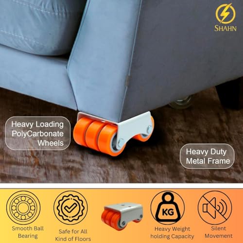 Noise Reduction Technology: Equipped with low friction bearing, our trolley wheels provide a quiet operation. This furniture shifting tool is perfect for maintaining a peaceful environment while using furniture mover rollers.
