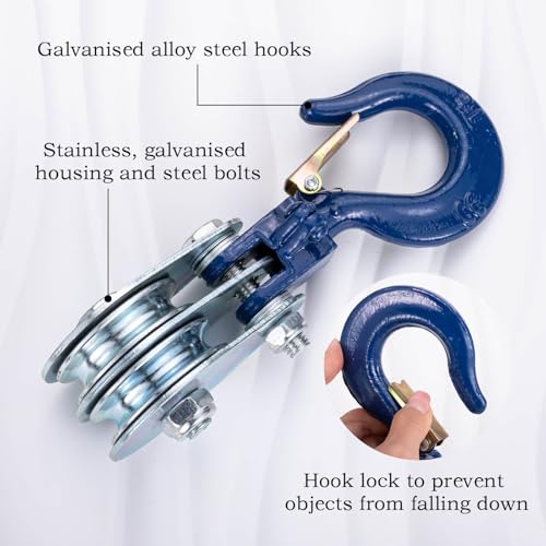 Double pulleys: easy to use, can reduce the load when lifting, carrying or hanging heavy objects, each pulley is equipped with bearings, smooth operation, low noise