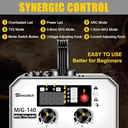 【MULTIPROCESS WELDER】SSIMDER Flux Core MIG & Stick & Lift TIG 3 IN 1 Welder to meet your different requirements. The unique IGBT control mode improves the reliability of the welder, this flux core welder is perfect for DIY projects, home repairs, farm work, automotive applications and construction sites.