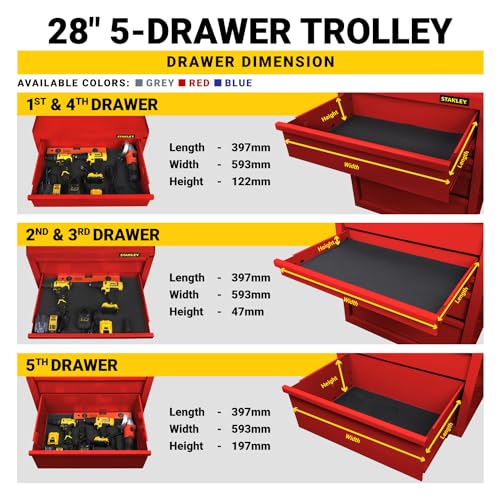STANLEY STST74422-8 5 Drawer Eco Roller Cabinet, Red, Multi … is Marketed by https://www.excelinds.com/online-shop/