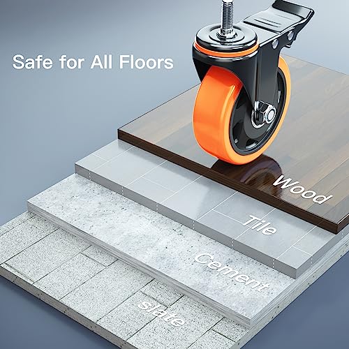 DOUBLE SAFETY BRAKE: Our top plate swivel casters can lock the wheel and the swivel simultaneously, holding the equipment firmly remain in place when the threaded casters are locked. Locking casters design make it more safe when used as rolling workbench casters, industrial casters, heavy-duty casters, especially on uneven surface.
