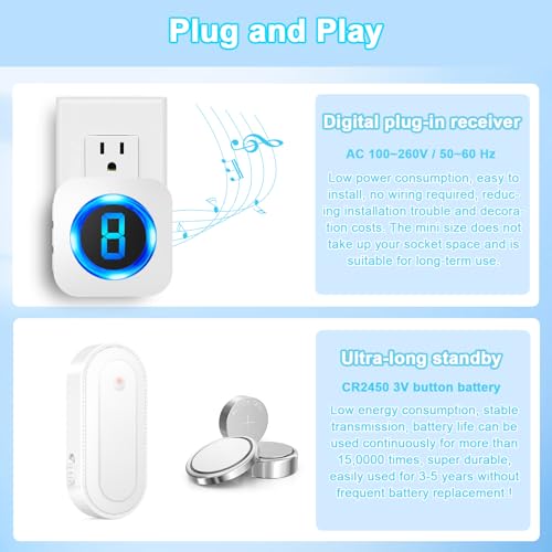 【Suitable for various occasions】This doorbell can be used as a doorbell for your retail store or restaurant for commercial purposes, alerting you when someone enters your shop so you don’t miss any customers. It can also be used as a home alarm system to look after children or elderly individuals, serving both as a security device to prevent theft and to ensure the safety of your home.
