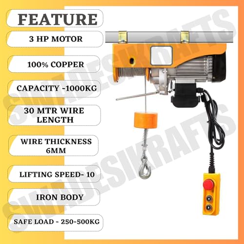 SWADESI KRAFTS 3hp PA 1000kg(250-500kg Safeload) 30Mtr6mm wi… is Marketed by https://www.excelinds.com/online-shop/