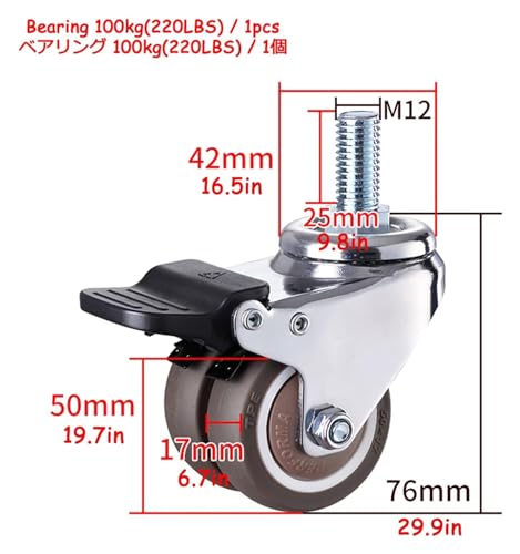 castors with brakes internal bearings are quick rolling and the surface is sleek that These trolley wheels are ideal for a hugeused in home, schools, garage, shops, trolleys and hospitals, Perfect caster wheels for furniture and other small space moving furniture