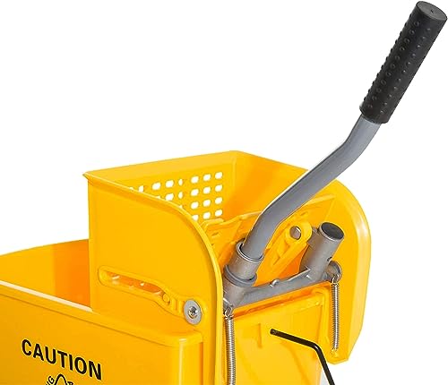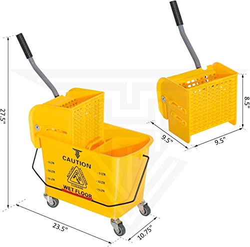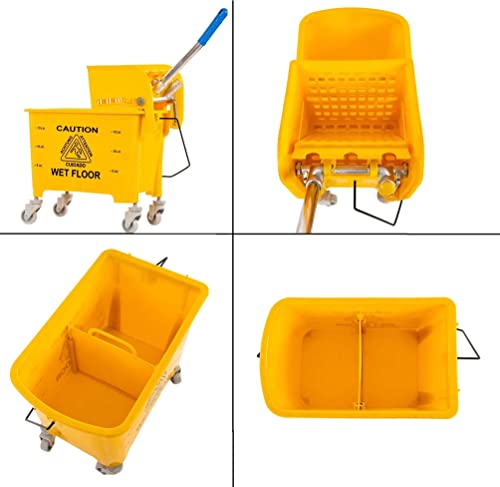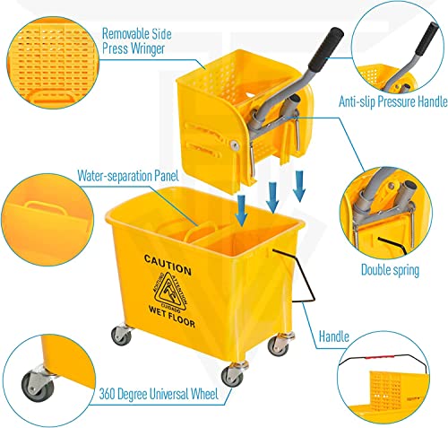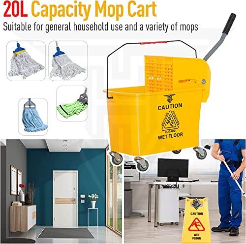【Safe Design And Suitable For Many Occasions】Cleaning wringer portable trolley use the bright color, bright yellow color for easy visibility and added safety. The trolley has warning signs printed on them to remind people of their safety without the stereoscopic warning board. Suitable for household, commercial, restaurant, hall.