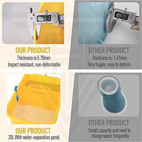 Material: ABS Plas【Premium Material Strong and Durable】The mop bucket made of PP which is featuring strong hardness, high temperature resistant environmental material, and difficult to react chemically. It’s strong and durable. The wheels are made of TPR which is anti-slip and wear-resisting. It doesn’t scratch the ground and easy to control.tic