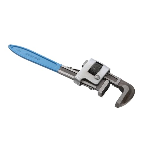 The firm teeth dig into the softer metal of the round pipe, giving you the grip you need to turn it even when it’s a little difficult. The adjustable jaw’s design, which allows for some deliberate out-of-square play, causes it to bind on the pipe, with forwarding pressure on the handle tightening the jaws.
