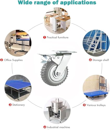 🔇 SMOOTH AND SILENT – Quiet & Floor-Safe Movement Thanks to double precision ball bearings which contribute to smooth mobility and low noise during movement, these swivel casters can keep smooth and silent even under heavy load. PVC material also will absorb shocks to keep low-vibration transport.