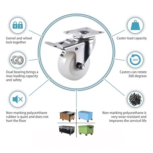 LOAD CAPACITY: With heavy duty double bearings and steel structure, each furniture wheel supports up to 400 kg load for swivel casters set of 4.