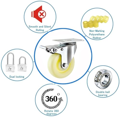 Smooth and Silent Rolling: This indicates that the wheel moves quietly and easily, reducing noise and friction.