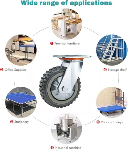 🏠 RELIABLE & HEAVY DUTY CASTER SET OF 4 -This caster set includes 2 Brack 2 swivel caster wheels 6” inches wheel size, The heavy duty outdoor casters can rotate 360 degrees very smoothly, silent & sturdy.