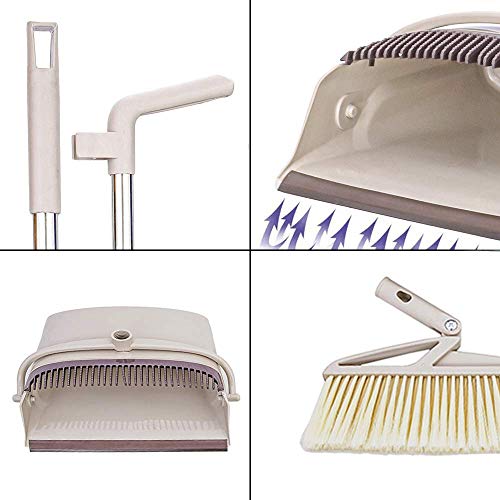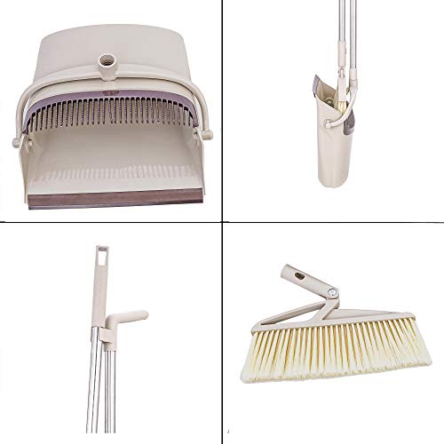 Broom And Dustpan Set Stand Up Broom Head And Dust Pan Combo, Remove Hair With Built-In Wisp Scraper (Beige)(hard_floor) (alloy_steel & rubber)