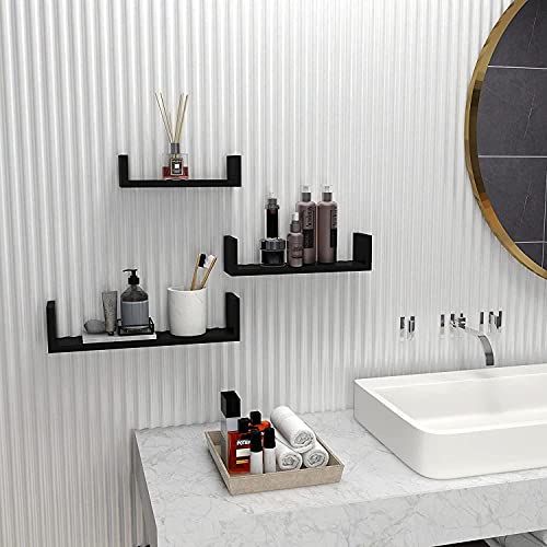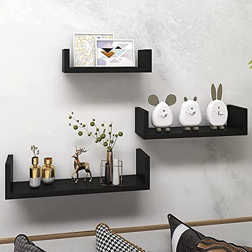SOLID WOOD FLOATING WALL SHELVES: Made of MDF laminate, these wall shelves are sturdy enough to hold your items. With a matte black finish, these floating U shelves will be a perfect compliment to decorate your house and get a different visual aesthetic!